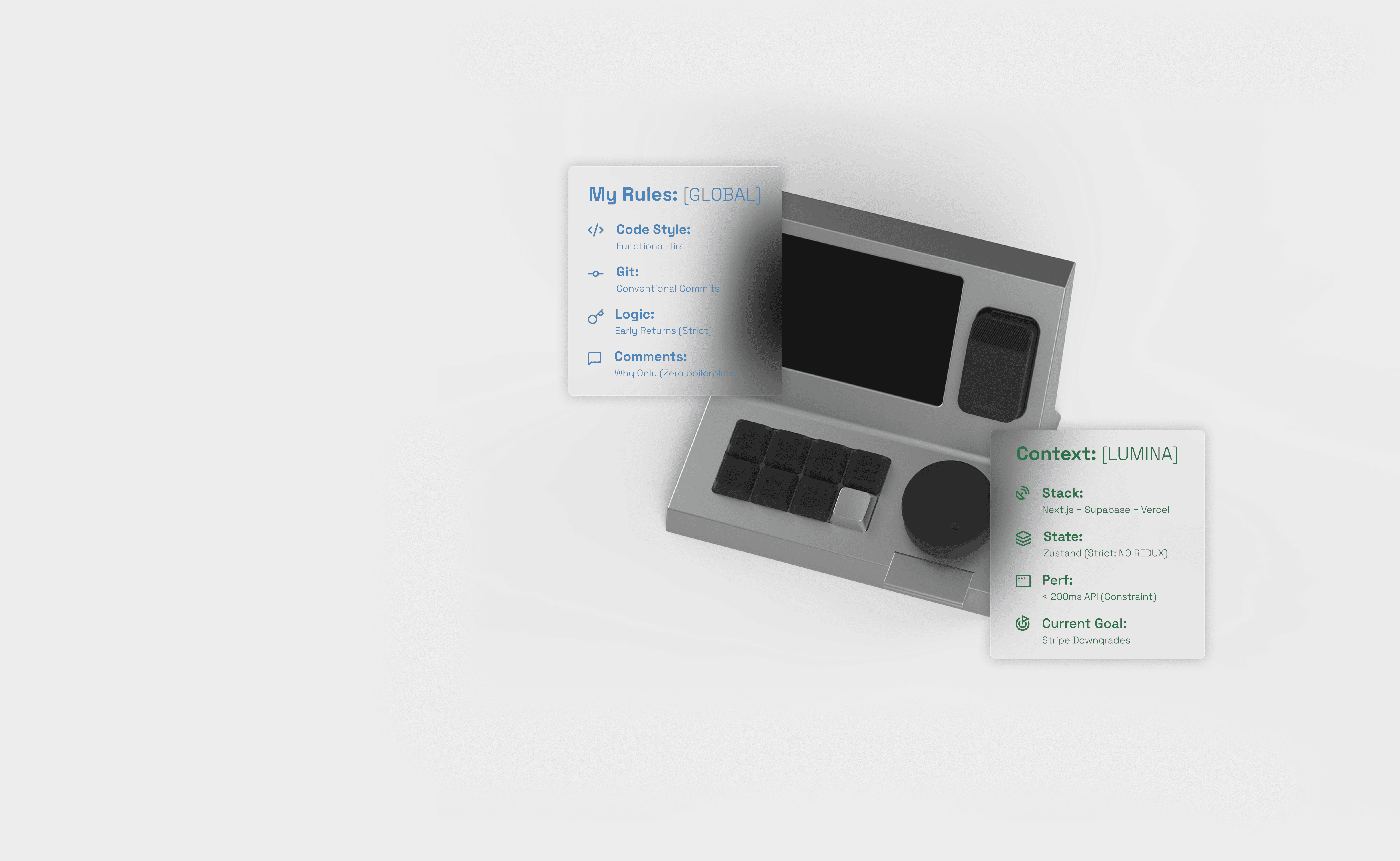 Stop starting from zero. SlashVibe securely syncs your taste, standards, and project context across every device and every agent.